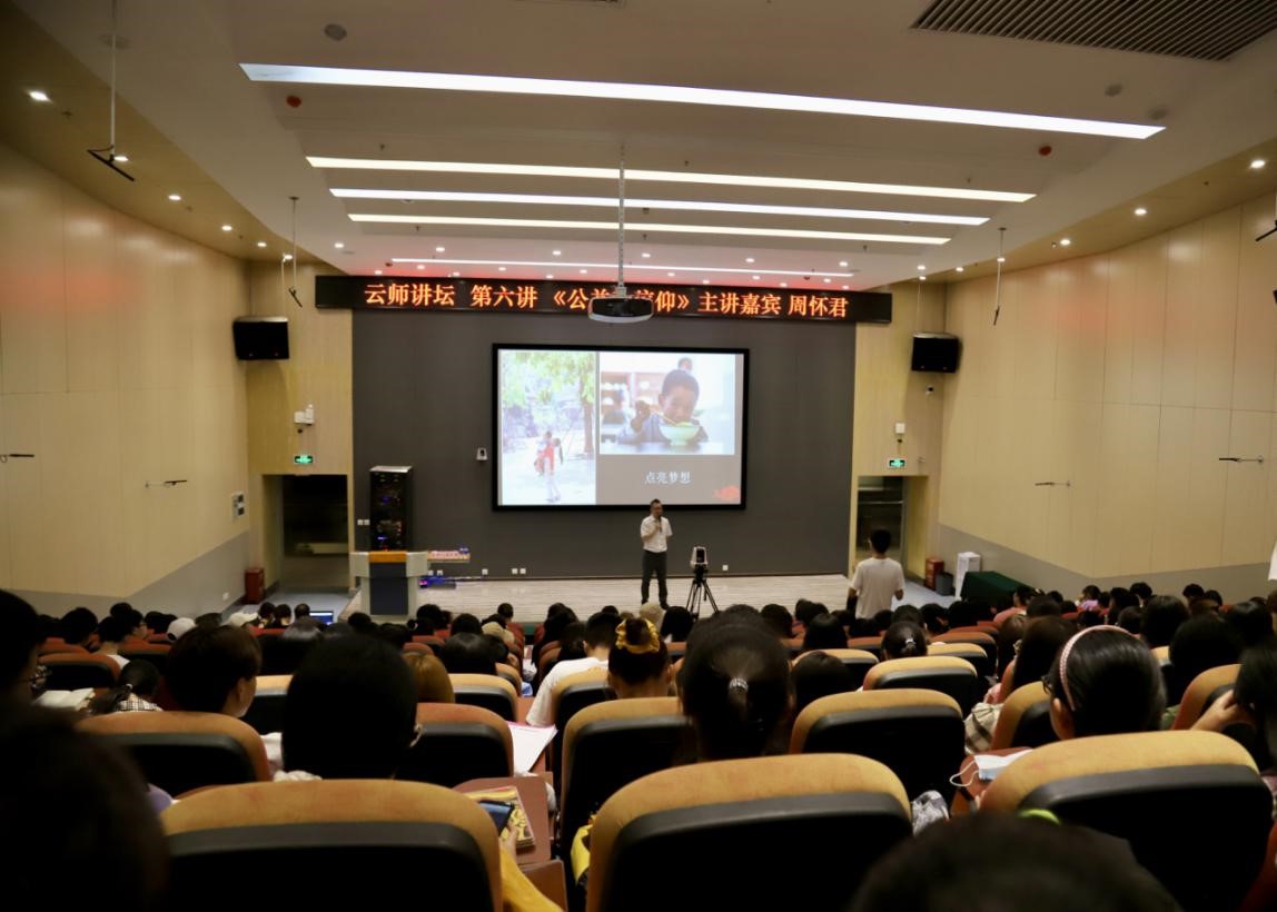 为促进学校教师教育特色改革和分类发展,强化学生综合素质教育,拓宽学生的知识视野,进一步繁荣校园文化、促进学术交流。9月4日,“云师讲坛”第六讲在必赢官网呈贡主校区教师教育国家级实验教学示范中心214报告厅举行。共青团云南省委兼职副书记,全国十佳音乐主持人,云南广播电视台主持人,云南省语言文学专家资深志愿者周怀君担任主讲嘉宾,校团委副书记曹逸凡主持本次讲座。