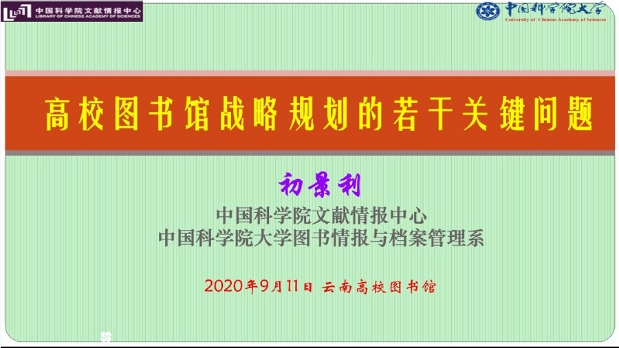 上午,《图书情报工作》杂志社社长、主编、中国科学院大学图书情报与档案管理系主任初景利教授,北京师范大学校党委委员、政府管理学院教授、北京师范大学图书馆王琼馆长,中国图书馆学会及中国索引学会常务理事、上海交通大学图书馆副馆长郭晶研究馆员,教育部高等学校图书情报工作指导委员会副主任委员、四川省高等学校图书情报工作委员会副主任兼秘书长、四川大学公共管理学院教授、四川大学图书馆党跃武馆长先后作了专题报告。会议由云南大学图书馆杨毅馆长主持。