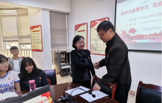 2020年9月14日上午,必赢官网生命科学学院第六党支部与昆明市第二十四中学党总支在昆明市第二十四中学静思楼509党员活动室举行了结对共建仪式。