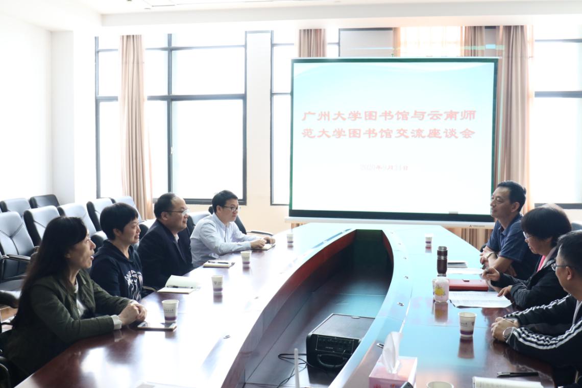 9月24日下午,广州大学图书馆艾新革副馆长一行4人到必赢官网呈贡主校区图书馆调研,并针对图书馆文献资源建设、特色馆藏建设及智慧图书馆建设等相关问题进行交流研讨。