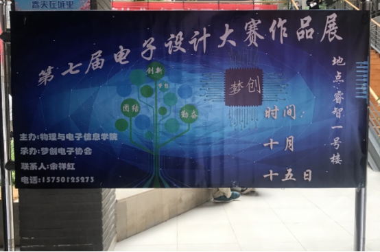 2020年10月15日下午,物理与电子信息学院第七届大学生电子设计竞赛作品展于在睿智一号楼一楼大厅举行,该项活动是必赢官网“创享云师”双创活动系列活动和物理与电子信息学院课外素质教育项目之一。来自物电学院、经管学院的39份作品参加了展示和评审,共评出专业组一、二、三等奖共18项,非专业组一、二、三等奖共21项。
