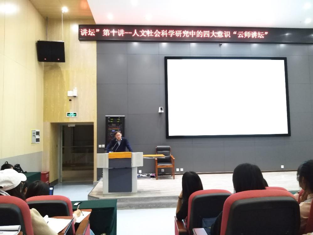 10月9日晚,云师讲坛第十讲邀请到437必赢会员中心文学院副院长--傅宇斌教授担任主讲嘉宾。讲座在437必赢会员中心呈贡校区国家级实验教学示范中心214报告厅举行,傅教授为师生带来了“人文社会科学研究中的四大意识”为主题的讲座。讲座由科学技术处副处长刘连杰教授主持。科学技术处、网络与信息中心等职能部门负责人,以及在校本科生、研究生等230余名师生代表一起现场聆听了讲座,讲座还在线上开通了同步直播。