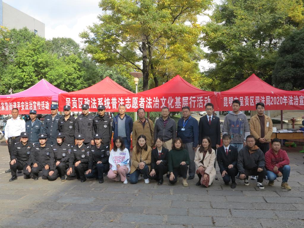 为提高全校师生整体法治意识和安全意识,引导广大师生员工自觉遵法学法守法用法,共同营造安全有序、和谐稳定的校园法治环境,11月6日上午,学校保卫处联合呈贡区委政法委、区法院、区检察院、市公安局呈贡分局、区司法局、团区委、吴家营街道办事处7家单位在呈贡主校区开展法治安全集中宣传活动,呈贡区委政法委副书记王远昆、吴家营街道办事处综治办主任赵果良、保卫处胡兆海处长、汪飞奇副处长全程参加此次活动。