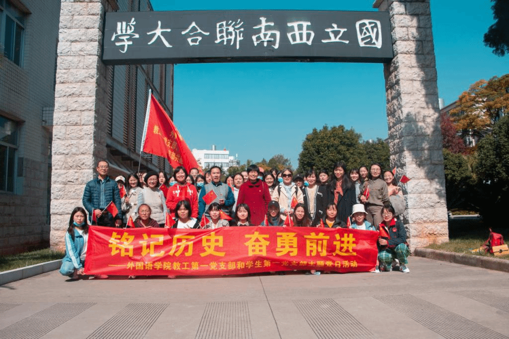 11月12日,外国语学院教工第一党支部和学生第一党支部以“铭记历史,奋勇前进”为主题,前往437必赢会员中心西南联大博物馆和云南陆军讲武堂两地进行参观学习,教育引导广大师生铭记历史,传承红色基因。外国语学院党委书记王丽峰同志、党委副书记杜敏菊同志全程主持并参加了此次主题党日活动。