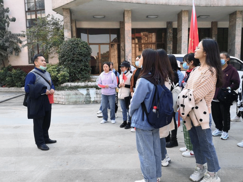 随后,在教工第一党支部孙兴文同志的带领下,全体师生党员来到了一二一校区外国语学院教学楼前,孙老师向大家讲述对外国语学院的深厚感情以及从教几十年来对于这份职业的尊重与热爱,让在场每一位同志都满载感动与收获,同时也向大家阐释了应以怎样的身份和态度去回顾历史,如何用自己的努力将联大精神薪火相传。