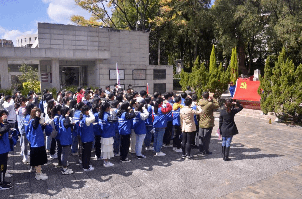 11月17日中午,五华区领导、环卫处领导、龙翔街道办事处七个社区、一二•一西南联大校区管委会党支部、结队共建职教学院秘书学党支部、泛亚商学院学生支部,校区先锋纠察队,后勤保障服务中心党员代表、北京金甲壳虫环境公司以及《昆明日报》、《8099999》等新闻媒体联合200余人参加《美丽中国 我是行动者》的垃圾分类主题党日活动。活动分两个阶段,第一阶段在西南联大博物馆烈士陵墓前祭奠献花与重温党员誓词,第二阶段在校区体操馆进行垃圾分类宣讲及垃圾兑换绿植奖品互动活动。