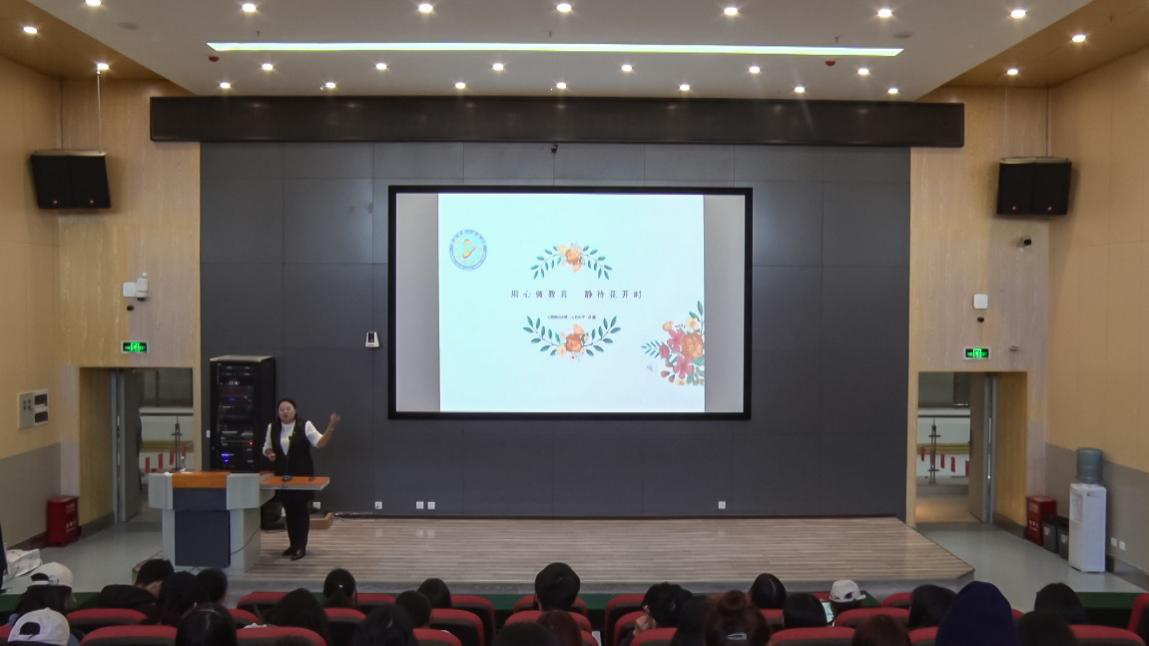 徐娅老师以“用心做教育 静待花开时”为主题,从一个教育工作者的初心出发,给参加讲座的所有人上了一堂生动的幸福教育课。她用她25年坚守教学一线的经历,分别从环境打造、文化建设、课堂体验、快乐学习、均衡发展几个方面诠释了幸福的内涵,也从各个方面为将来从教的同学们提出了一些建议,为同学们的职业生涯规划做了引导。