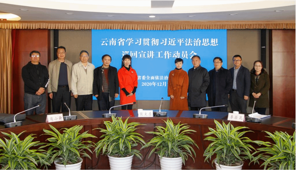 12月14日下午,中共云南省委全面依法治省委员会办公室举行“云南省学习贯彻习近平法治思想巡回宣讲工作动员会”。云南省委政法委常务副书记、省委依法治省办副主任李若昆同志传达了省委书记阮成发同志的重要批示精神,云南省委常委、省委政法委书记、省委依法治省办主任张太原同志作重要讲话。云南省委依法治省办副主任、省司法厅厅长商小云同志主持会议。必赢官网法学与社会学学院周梁云教授担任云南省学习贯彻习近平法治思想巡回宣讲团成员。