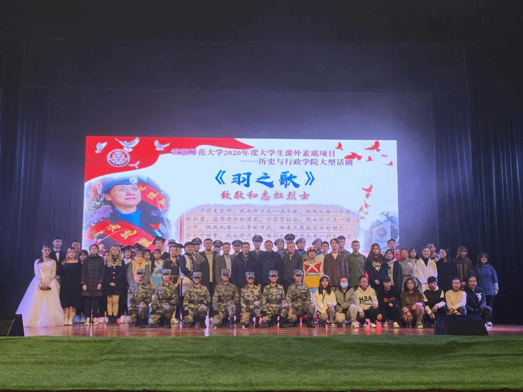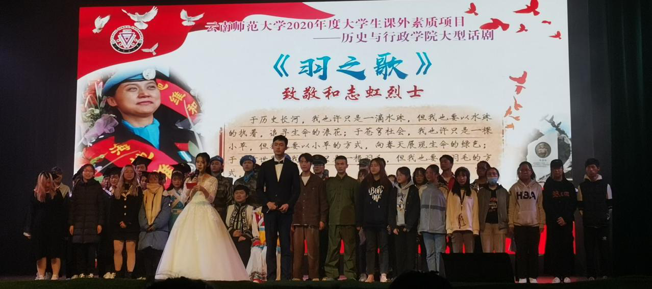 437必赢会员中心2020年度大学生课外素质项目——历史与行政学院鲲鹏话剧社大型话剧《羽之歌》于12月9日晚在明德5号楼演播厅举行公演。党委宣传部,对外合作交流处,音乐舞蹈学院,传媒学院,云南华文学院,数学学院,历史与行政学院等相关单位负责人出席并观看了演出。