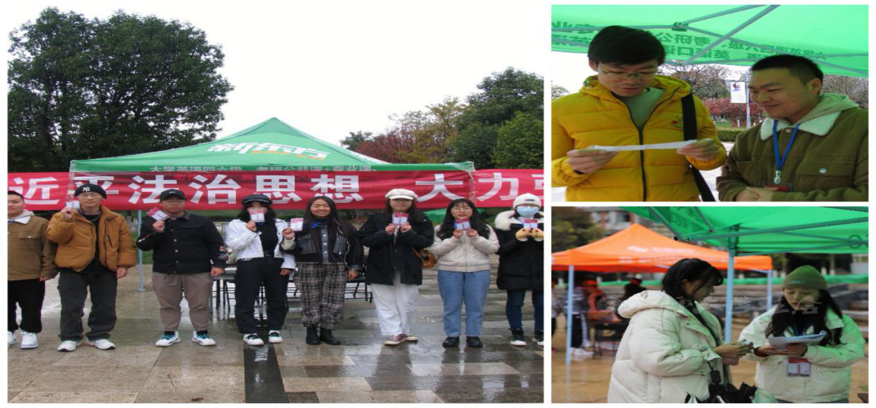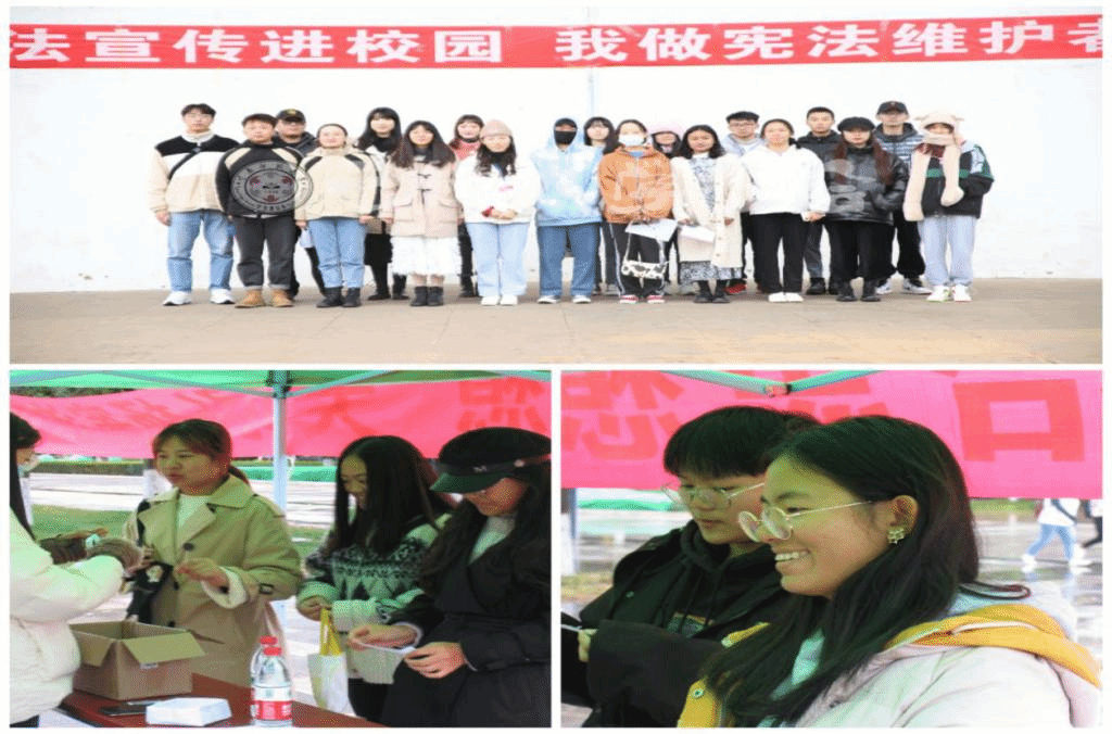 国家宪法日当天,由学生代表带领百余名学生开展了宪法晨读、宪法宣誓活动。随后在呈贡主校区西区红烛广场和东区贝壳广场开展宪法宣传活动,结合“国家宪法日学习宣传图片展”、“宪法知识竞答小游戏”等形式,向广大师生讲解宪法知识、传播宪法文化。