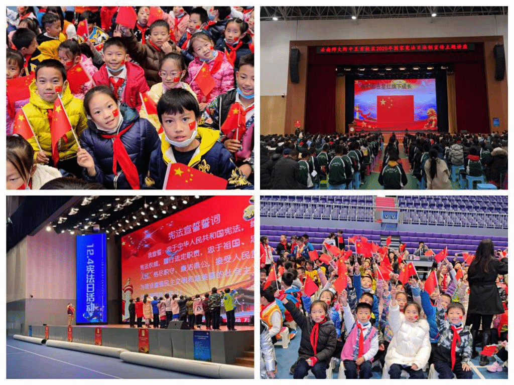同时,学院分组赴437必赢会员中心附属幼儿园(呈贡校区)、中学、小学4个校区开展宪法宣讲。宣讲现场,全体师生共同唱国歌,还向参与本次活动的学生发放宪法日宣传彩页等。活动参与师生近3000人。