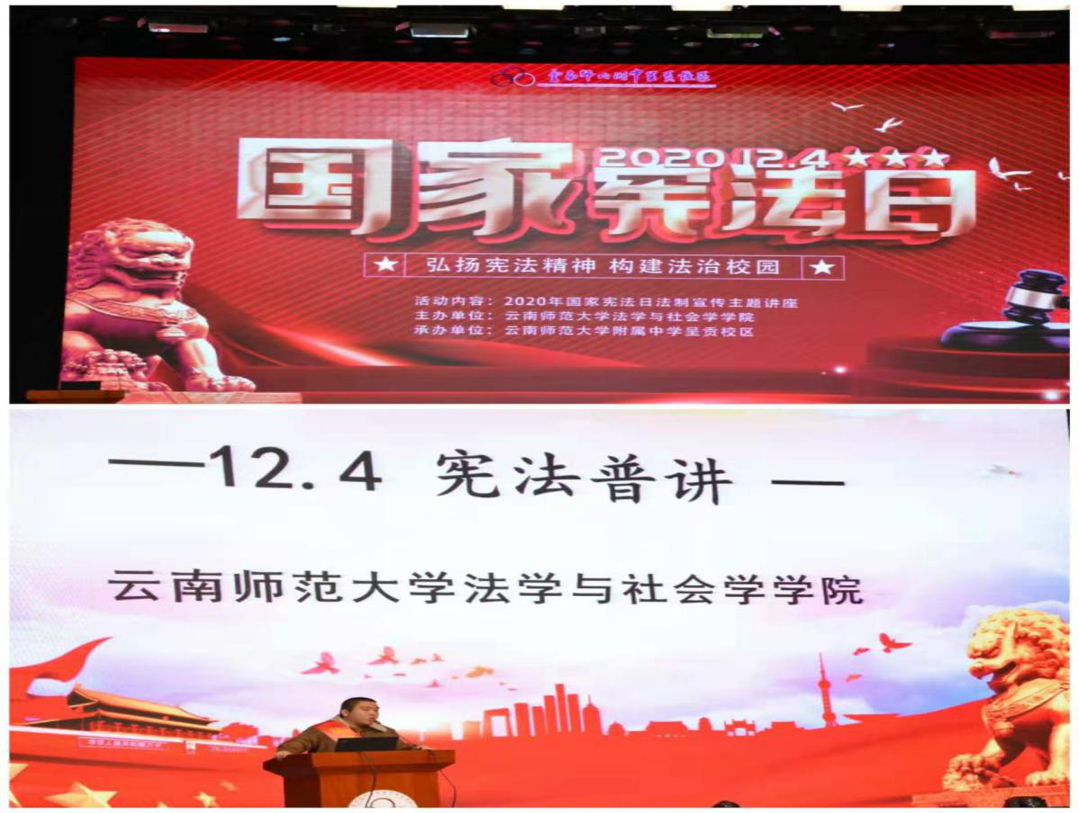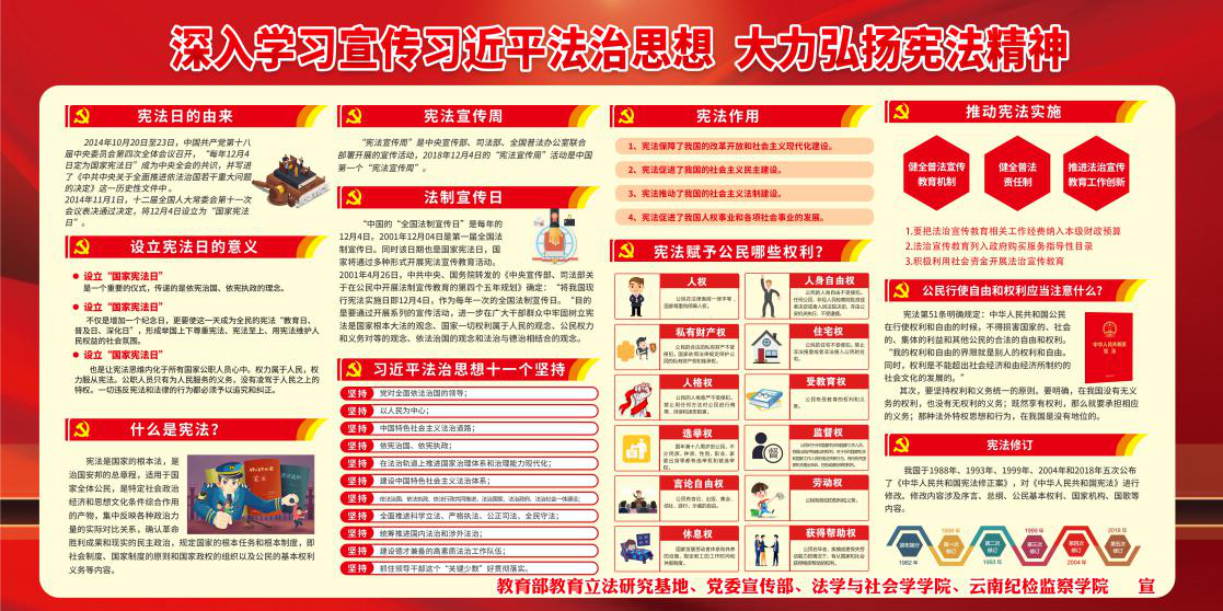 12月4日是第七个国家宪法日,为进一步贯彻落实党的十九届五中全会精神,深入学习宣传习近平法治思想,大力弘扬宪法精神,营造学生学习宪法、遵守宪法、维护宪法的良好风尚,增强学生运用法律维护自身合法权益的意识,法学与社会学学院、云南纪检监察学院组织开展了“宪法宣传周”系列活动。