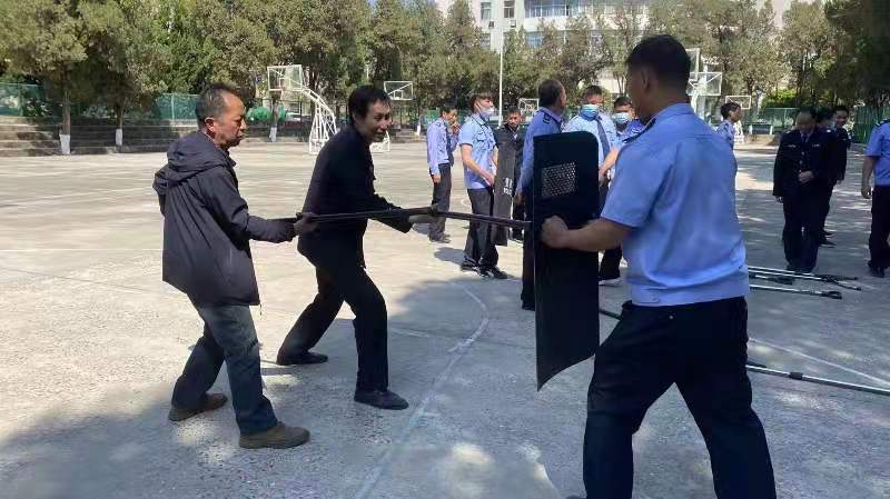 培训活动开始前,胡兆海处长向参加人员阐明了此次活动的重要性,并对培训活动过程中需要注意事项提出了要求。整个培训活动分为三个阶段进行,第一阶段开展消防安全知识培训,主要采取集中进行理论授课的方式进行;第二阶段是进行灭火实操演练,主要采取逐个亲身体验和操作的方式进行;第三阶段由文林派出所范正奎警官进行反恐防暴内容培训,主要采取集中讲解正确使用防暴器材、示范演示应对暴恐事件和组织对抗训练的方式进行。