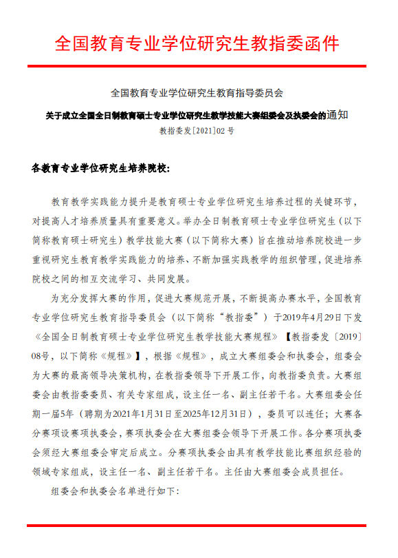 近日,必赢官网文学院谭晓云教授入选全国教育硕士专业学位研究生实践教学专家工作小组、全国全日制教育硕士专业学位研究生教学技能大赛执委会。该工作小组和执委会属全国教育专业学位研究生教育指导委员会下设分支。全国教育专业学位研究生教育指导委员会是国务院学位委员会、教育部、人力资源和社会保障部领导下的专家组织,在我国人才教育事业培养领域具有重大影响力。其中,谭晓云教授作为实践教学专家组的成员,主要负责推进全日制教育硕士专业学位研究生实践教学的研究、组织和指导;作为教育硕士专业学位研究生教学技能大赛执委会成员,充分发挥大赛的作用,促进大赛规范开展,不断提高办赛水平。