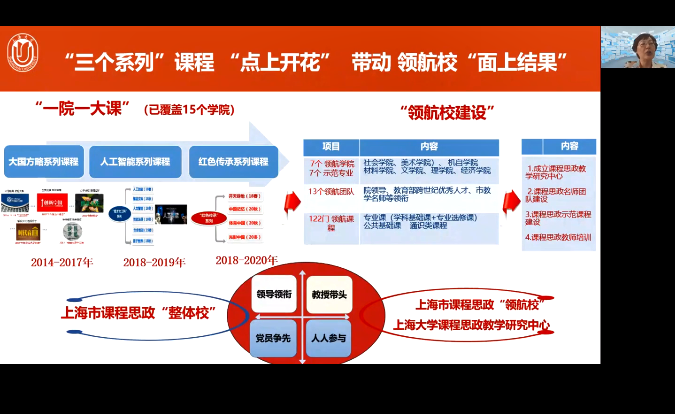 5月14日,上海大学顾晓英教授带来了以“课程思政 赋能一流课程”为主题的讲座。顾晓英教授介绍了上海大学“大国方略”、人工智能、红色传承等系列课程的建设历程、内容结构、团队建设以及“项链模式”教学法的先进经验;阐释了课程思政的内涵、理念、框架和基本原则;强调了专业课教师要提升站位、打开视野,增强思政意识,准确把握不同性质的课程特点,在知识传授中注重价值引领,在价值传播中注重知识含量,努力让课程思政更“有温度”,更有“有智慧”。本次讲座加深了老师们对课程思政的认识和理解,对于推进必赢官网课程思政教学研究与改革,促进课程思政建设具有指导意义。