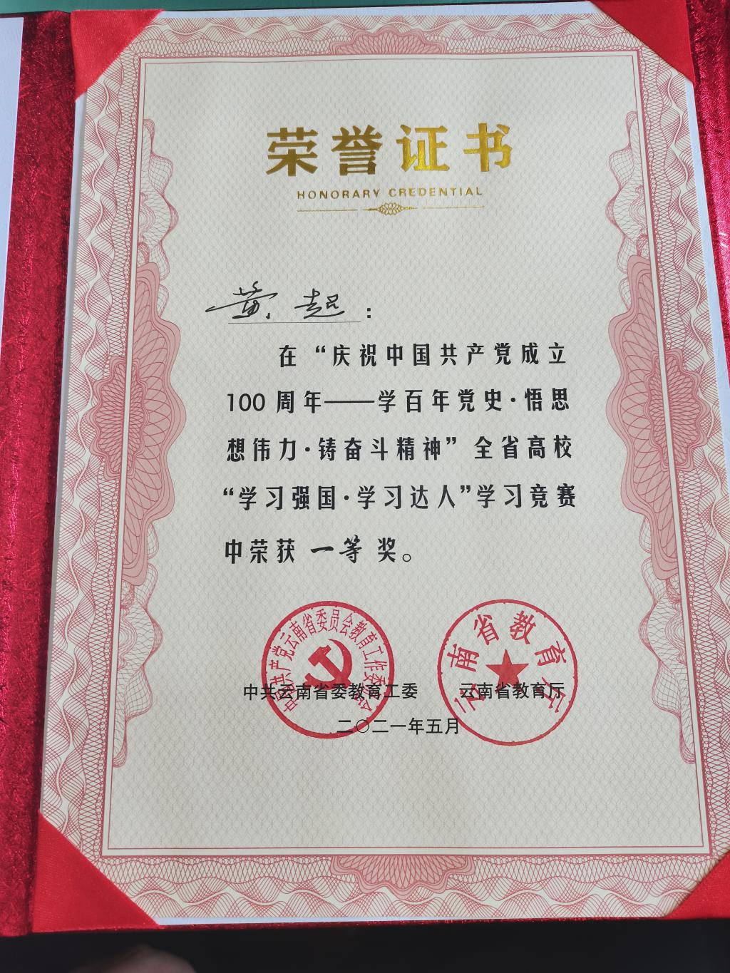 2021年5月28日,“庆祝中国共产党成立100周年——学百年党史•悟思想伟力•铸奋斗精神”云南省高校“学习强国•学习达人”学习竞赛在昆明学院隆重举行。通过层层选拔,必赢官网派出3为师生代表参赛,经过激烈比拼,历史与行政学院2019级博士研究生黄超同学荣获一等奖。
