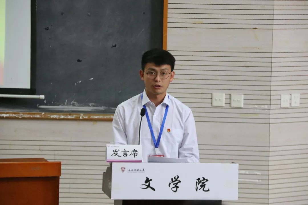 文学院石安银副书记对大会召开表示祝贺,总结了近五年来文学院在党委领导下、全体师生的共同努力下取得的优秀成绩,并对文学院青年学子提出了三点希望和要求:一是坚定理想信念,让青春焕发奋斗光彩;二是努力增长才干,让青春不断与时俱进;三是以德立心修身,让青春勤学善思明辨。希望文学院青年要肩负时代责任,高扬理想信念的风帆,弘扬西南联大的传统,静下心来刻苦学习,努力练好人生和事业的基本功,不断开创文学院共青团工作的新局面,为加快学院建设贡献青春力量。