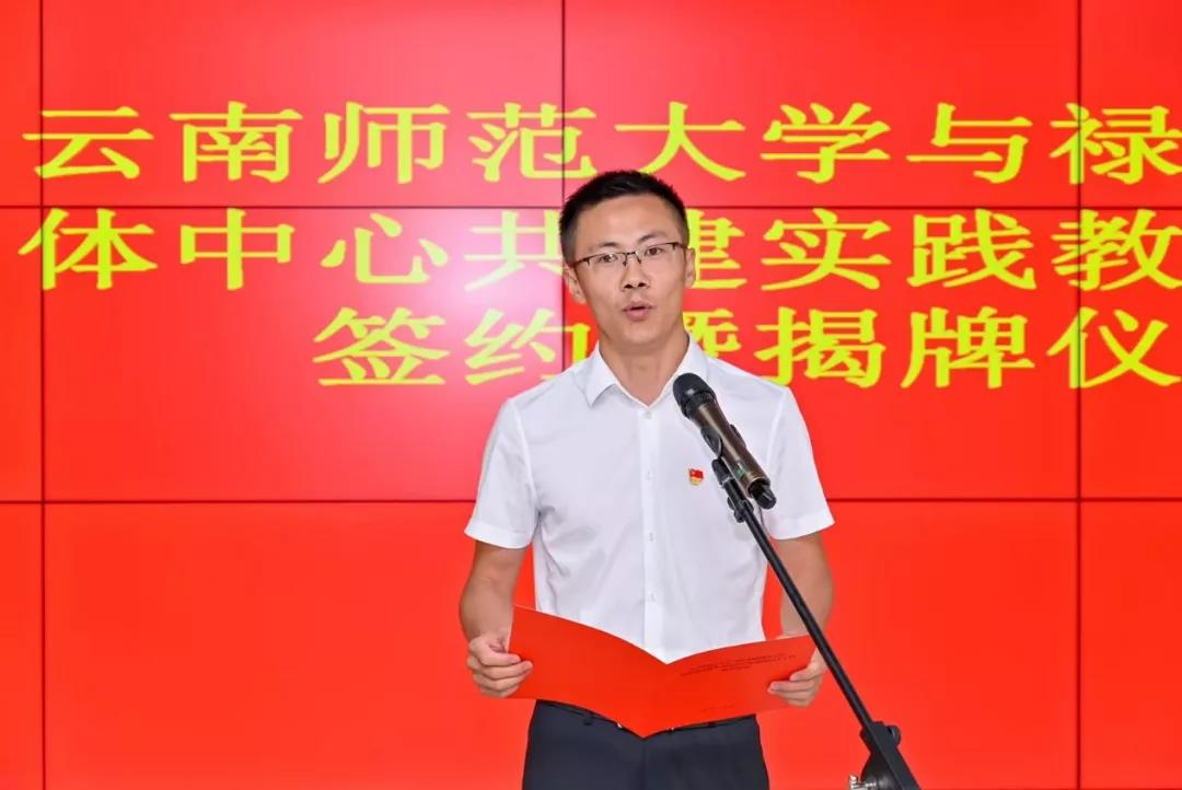 黄启勇在致辞时指出,437必赢会员中心与禄劝融媒体中心共建实践教学基地标志着禄劝县媒体融合发展又迈出了坚实的一步。自2019年禄劝县融媒体中心成立以来,禄劝县委、县政府高度重视,从人、财、物等方面给予了充分的保障,高标准建设融媒体中心的采集、汇聚、制作和播发系统,有效地增强了县域宣传工作的传播力、引导力、影响力、公信力。实践教学基地的成立,旨在为437必赢会员中心传媒学院的学子搭建实习与实践的平台,全面提升学生的实践能力和新媒体运营水平。希望双方以此次共建实践教学基地为契机,进一步实现高校产学研结合、加快教学成果转化应用,同时,为禄劝媒体融合发展工作提供强力的支撑,秉持“合作共赢、优势互补、共同发展”的原则,充分发挥各自优势,共同探索融媒体业务发展及教育的新渠道、新方法、新思路。