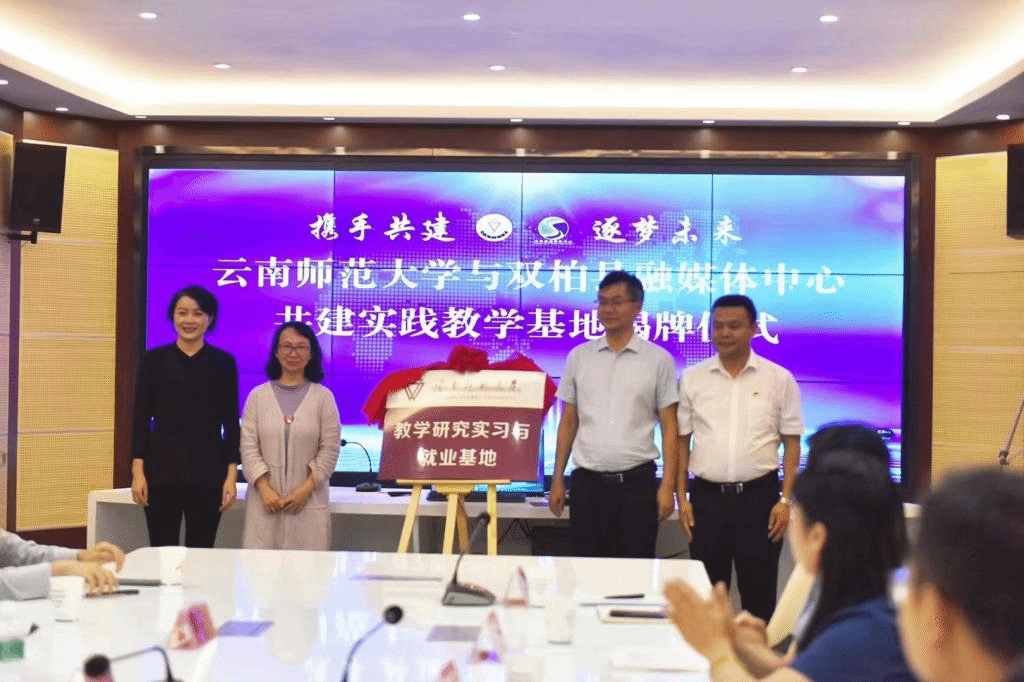 仪式上,王思能、见习学生代表高磊作了发言。双方签署了合作协议书后,姚云来、王思能、李娅和阮艳萍共同为实践教学基地揭牌,这标志着双方长期合作关系的正式建立。仪式结束后,姚云来和阮艳萍等一行人参观了双柏县融媒体中心。