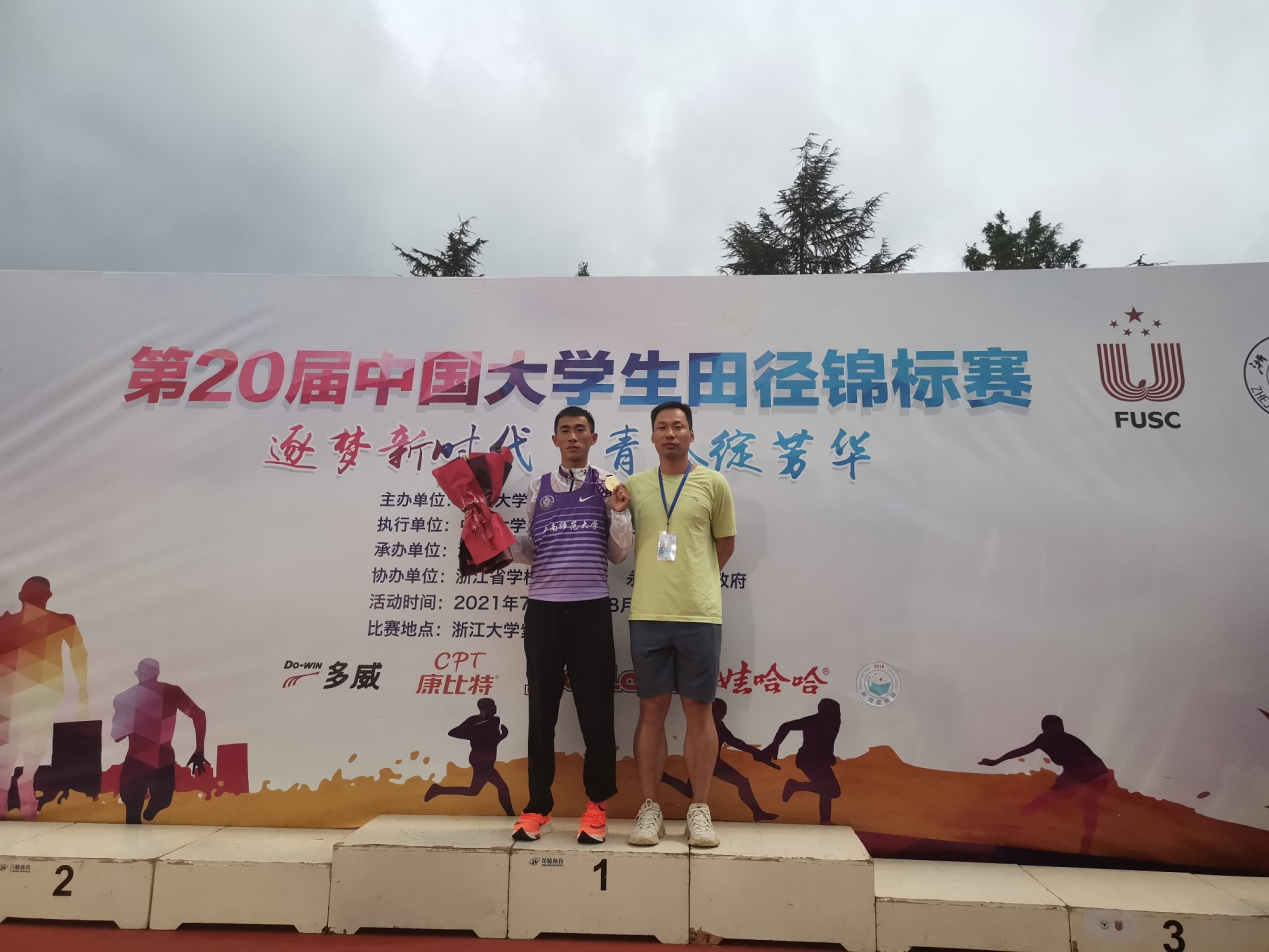 必赢官网体育学院2018级运动训练专业学生郑爱伟在高水平组比赛中以7.35米的成绩获得季军。郑爱伟以7.21米的成绩进入决赛,在决赛中的最后一跳,将成绩提升至7.35米,继2019年必赢官网学生李宏一获得该项目跳远全国冠军后,再次登上全国比赛领奖台。