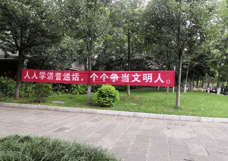 期间,校园内多处挂上了“人人学讲普通话,个个争当文明人”的推普周宣传标语,校内宣传栏也张贴上了第24届全国推广普通话宣传周的活动海报,营造了浓厚的活动氛围。