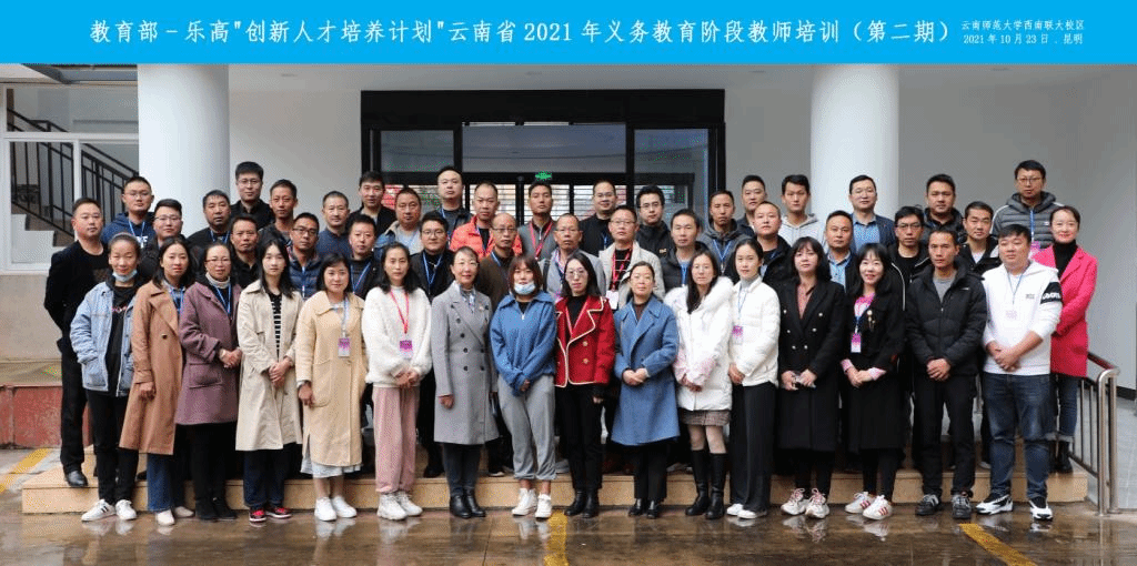 10月16日、23日上午,教育部—乐高“创新人才培养计划”2021年义务教育阶段第一、二期教师培训相继在必赢官网一二一西南联大校区开班。来自昆明、普洱、丽江、昭通、玉溪、版纳、怒江的100名义务教育阶段学校管理者们参加了开班仪式。