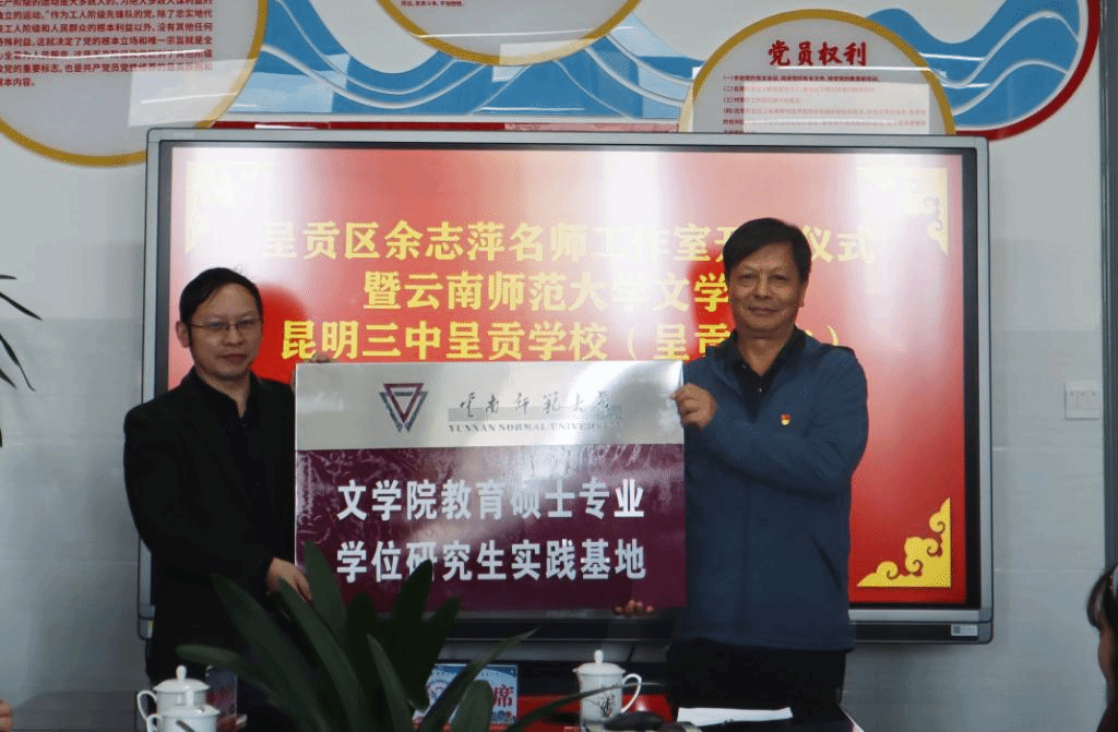 随后,文学院傅宇斌副院长与呈贡一中杨少宁书记签订合作协议并进行了挂牌仪式。