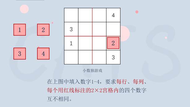 接着,王玉讲解员作了题为《数独游戏》的讲解。王玉同学由浅入深,讲解了“初体验4阶数独”“数独历史来源”“进阶数独”“高阶数独”。
