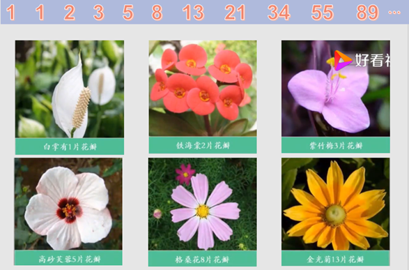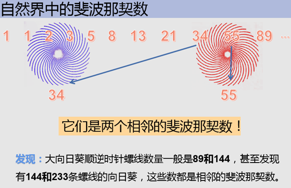 10:00-10:40,由刘佛莲讲解员首先在小学五年级(2)班开展题为《斐波那契数列》的讲解。刘同学从兔子繁殖引申开来,讲述了斐波那契数列的由来、特征,自然界中斐波那契数:向日葵花盘内葵花籽排列的螺线数、斐波那契螺旋线、人类的耳朵、鹦鹉螺、海洋的飓风、蒙娜丽莎画像,引出了斐波那契数与黄金分割比例数的关系。