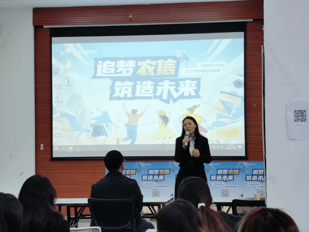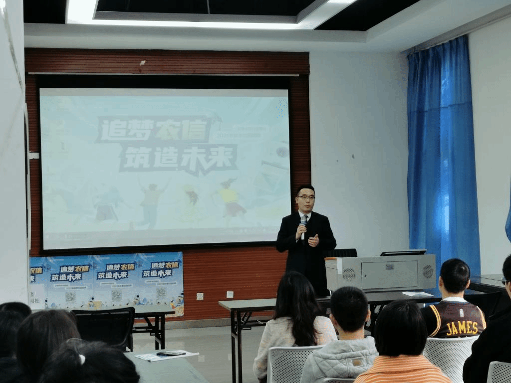 为使相关专业毕业生更加充分了解宣讲活动的目的和意义,有针对性地进行应聘准备,李红处长鼓励同学认真准备,树立信心,积极应聘。孔祥丹副主任在讲话中围绕“因农而生,为农而起,凭农而兴”的初心使命对农信社进行介绍。