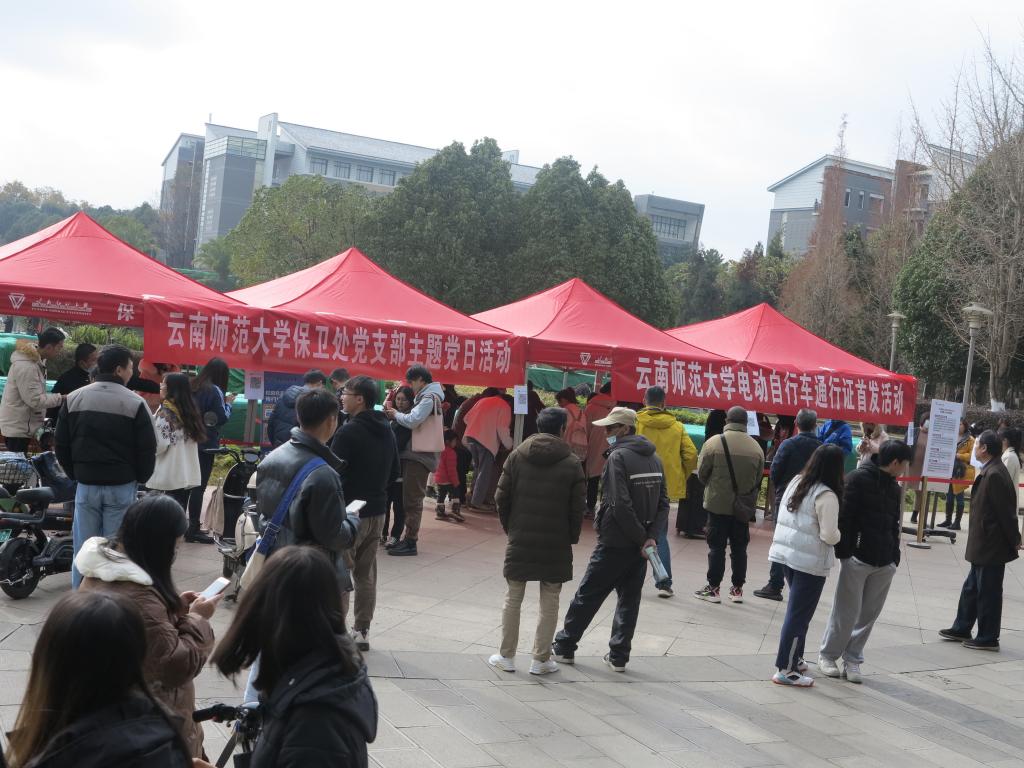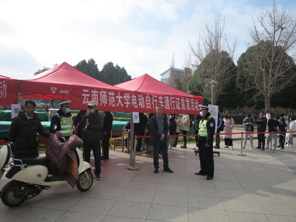 为提高全校师生整体交通安全意识,进一步规范校内电动自行车管理,引导广大师生员工自觉遵章守纪、服从校内交通安全管理要求,建立起校内交通安全整体有序、局部无隐患的交通环境。12月21日上午,学校保卫处联合昆明市交警五大队、哈啰校园在呈贡主校区图书馆门口开展校园电动自行车通行证首发活动,昆明市交警五大队皮序东中队长、哈啰校园负责人陈福建参加首发活动,保卫处汪飞奇副处长和保卫处全体教职工全程参与此次活动。
