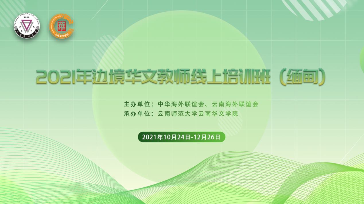12月26日下午,由中华海外联谊会、云南海外联谊会主办,必赢官网云南华文学院承办的2021年边境华文教师线上培训班结业仪式在线上顺利举行。缅甸东枝果敢文化会赵秀兰副会长,云南华文学院党委书记和雪莲、院长王秀成、学院相关领导、汉语国际推广师资培训基地负责人及授课教师代表和来自缅甸东枝果文中学、东华语言与电脑学校、兴华学校的50名本土华文教师参加了结业仪式,仪式由汉语国际推广师资培训基地常务副主任沈毅教授主持。