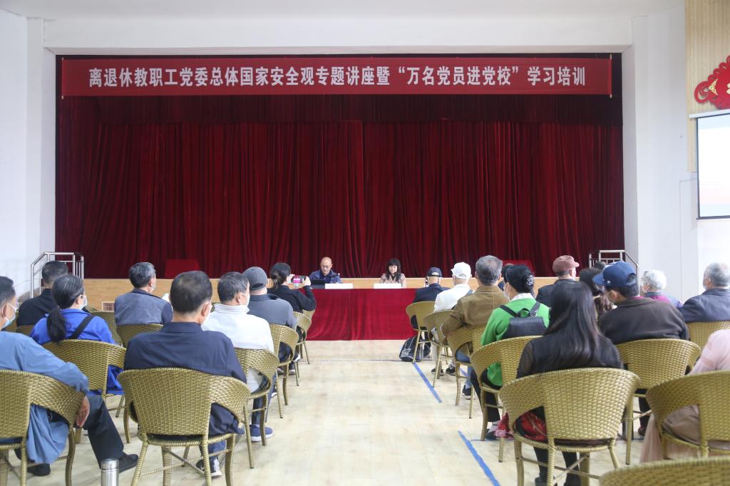 5月13日上午,为深入学习贯彻习近平总书记关于总体国家安全观重要论述,牢固树立总体国家安全观,巩固马克思主义在意识形态领域的指导地位,铸牢中华民族共同体意识,感悟新时代国家安全成就,为党的二十大胜利召开营造良好氛围。离退休教职工党委在一二一西南联大校区离退休教职工西院活动中心举行了总体国家安全观专题讲座暨“万名党员进党校”学习培训。退休党总支书记、副书记,党支部书记、各团体协会主要负责人、行政组长、活动室管理员及离退休工作部门全体人员40余人参加。会议由离退休教职工党委书记王琼玲主持。