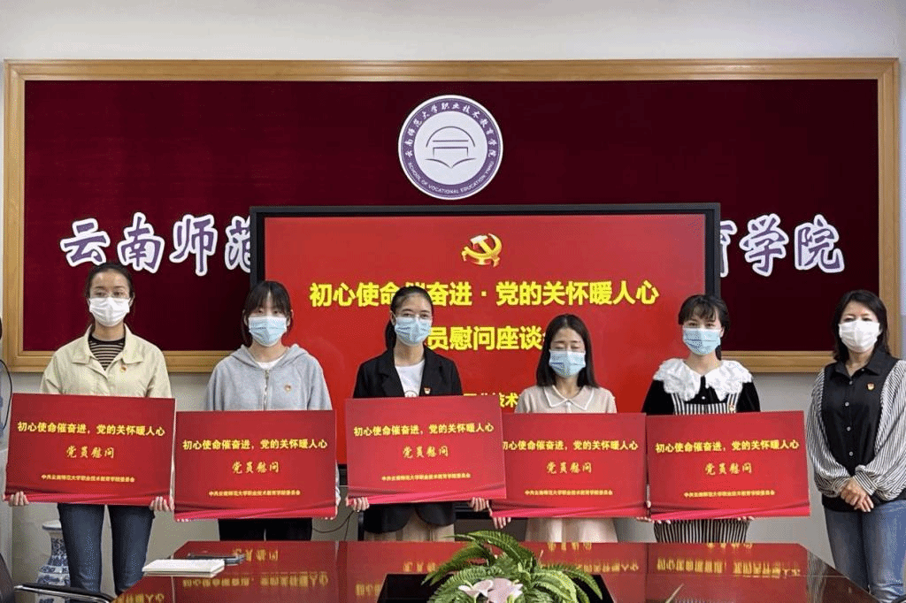 5月13日下午,职业技术教育学院党委在一二·一西南联大校区召开“初心使命催奋进 党的关怀暖人心”党员慰问座谈会,学院党委书记刘虹,副书记向斯楠,全体党支部书记、辅导员、组织员和学生党员代表参会。会议由学院党委副书记向斯楠主持。