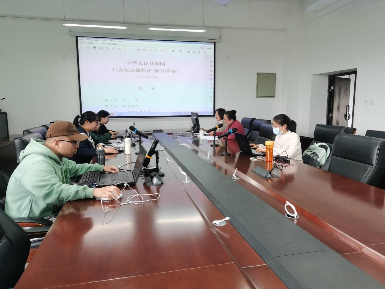 师生们联系实际,根据《宪法》和其他法律,对《中华人民共和国妇女权益保障法》(修订草案)(二次审议稿)中的条文逐条进行研讨,指出草案的不足并提出相应的完善建议。