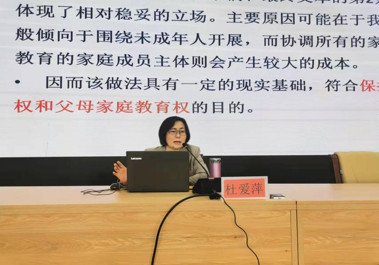 5月9日至15日,是全国首个“家庭教育宣传周”。必赢官网杜爱萍副教授应邀参加了云南省妇联与云南省教育厅举办的“送法进万家 家教伴成长”为主题的系列活动。5月9日与5月12日,杜爱萍副教授以“家事入国法 教育促和谐”为主题,为来自31个省级单位的干部以及玉溪市红塔区妇儿工委成员单位工作人员解读了《家庭教育促进法》的出台背景及意义、法律依据、具体内容以及适用中须注意的问题等。参加培训成员均表示对《家庭教育促进法》有了更深刻的认识。