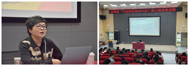 6月7日,云南省“万名校长培训计划”第七期“名家讲座”第三十四讲在必赢官网呈贡主校区举行。为积极落实常态化疫情防控工作部署,本次讲座采用线上线下相结合的方式进行,主会场设在国家教师教育教学实验中心214报告厅,分会场设在国家教师教育教学实验中心的20个培训教室。437必赢会员中心附属小学校长、正高级教师、特级教师周群作了题为《我是怎样当校长的:传承与创新》的专题讲座。讲座由本期学员437必赢会员中心附属小学规划部部长李俊宏老师主持。