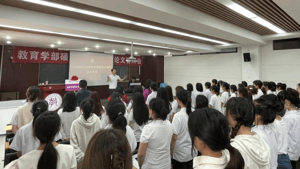 为加快构建德智体美劳全面发展的学生教育体系,切实推进高校新时代美育实践创新,近日,教育学部在明德4号楼举行师生合唱团成立仪式。教育学部党委书记禹紫灵、党委副书记朱静虹、副主任王文军以及合唱团全体成员参加成立仪式。仪式由团委书记王友良主持。