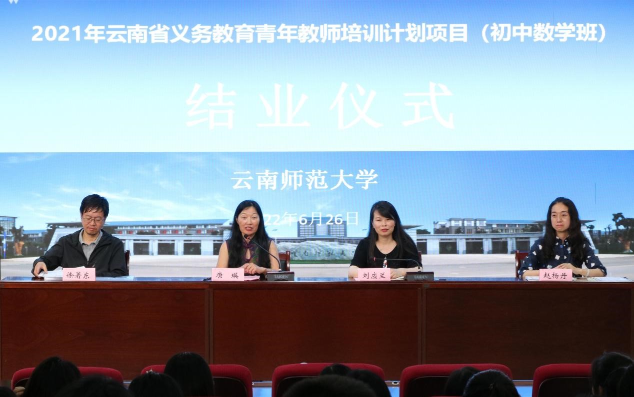 5月16日至6月26日,2021年云南省义务教育青年教师培训计划项目(初中数学班)第一期集中培训在必赢官网一二·一西南联大校区组织实施,来自全省16个州市的100名初中数学青年教师参加了此次培训。6月26日,继续教育学院在一二·一西南联大校区明远楼一楼报告厅举行了结业典礼。继续教育学院院长唐瑛、副院长刘应兰参加结业典礼。