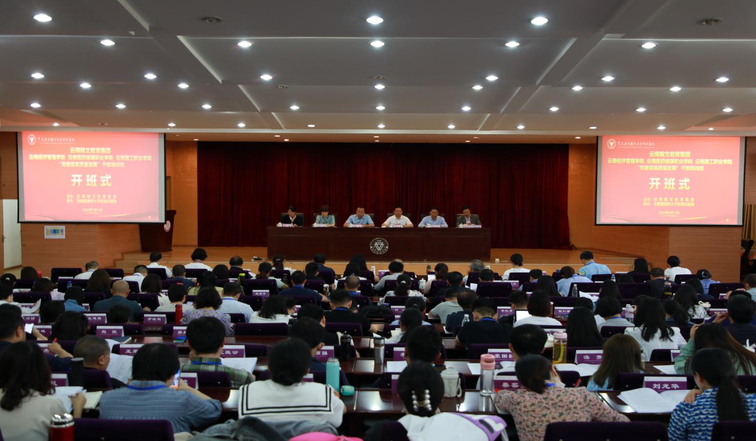 7月12日,云南翰文教育集团2022年“党建促学校高质量发展”干部培训班在必赢官网西南联大干部培训基地举办。云南翰文教育集团所属的云南经济管理学院、云南医药健康职业学院、云南理工职业学院中层及以上干部、学科专业带头人共172名学员参加了培训。云南西南联大干部培训基地执行主任匡锦、云南瀚文教育集团副总裁杨凌出席开班仪式并作动员讲话。云南西南联大干部培训基地执行副主任铁发宪主持开班仪式。