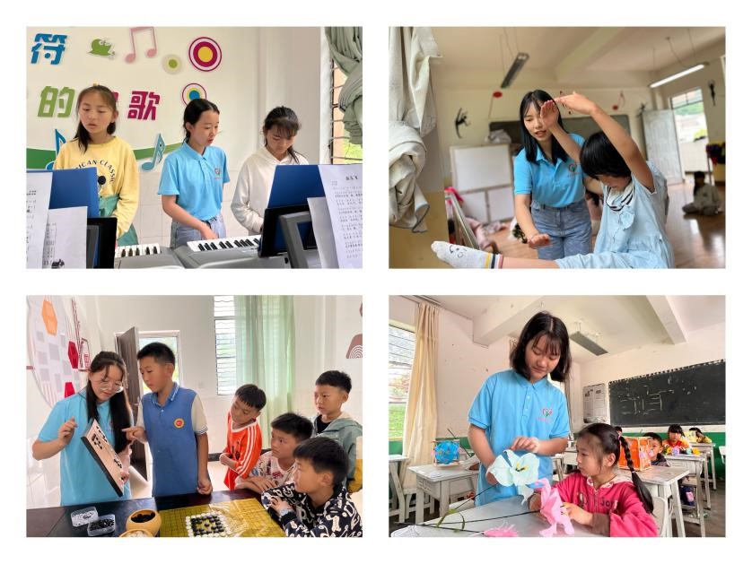 助学支教送温暖,点亮乡村振兴梦。“汇聚青春力量 助力乡村振兴”实践团赴铜厂乡中心小学少年宫开展助学活动,“红色筑梦·爱心助学”实践团赴易门县六街中学开展支教活动。实践团成员们结合专业特长和当地孩子的实际需求,开设皮影戏、手工制作、绘画、泥塑、书法、电子琴、古筝、舞蹈、阅读、棋牌、体育、科普等多项课程,进一步开阔乡村儿童的视野,打造成长“第二课堂”,点亮乡村儿童的知识梦。