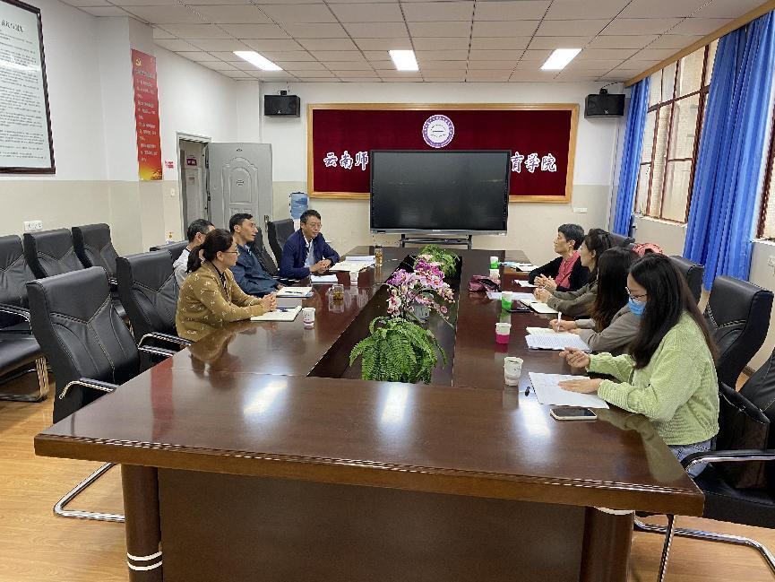 9月2日上午,昆明文理学院人文学院院长张承明、副院长吴雁汶和小学教育系主任李宗才等一行5人到必赢官网职教学院交流小学教育专业建设工作。职教学院院长牛元帅、副院长王黎智和教育学系主任吴骏、小学教育专业负责人樊莹莹参加了座谈交流。