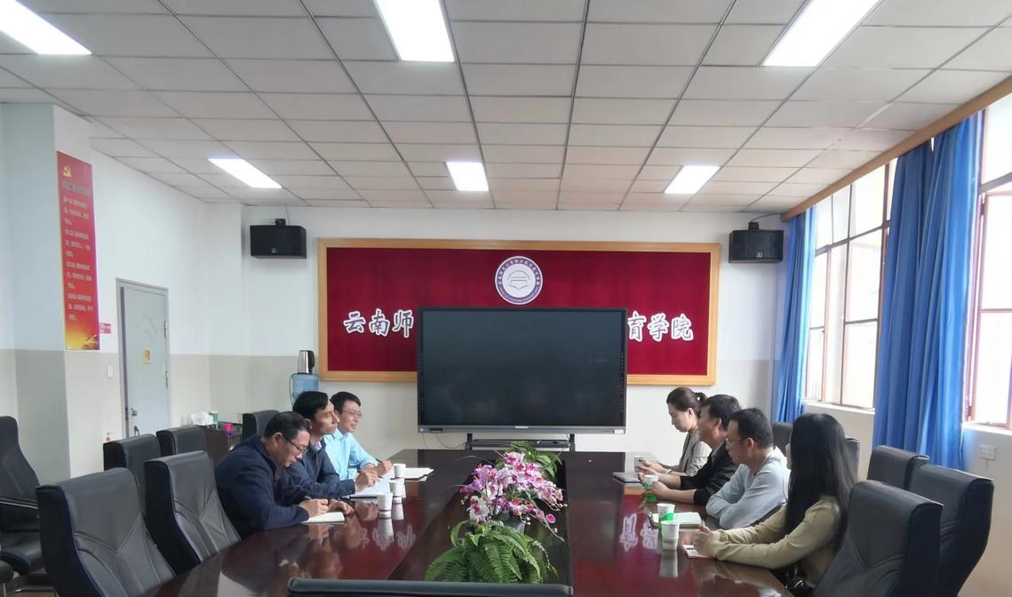 9月6日上午,明通小学教育集团副校长杨坤、办公室主任罗天姝、新教师发展部主任莫斌等一行4人到职教学院调研毕业生实习就业工作,职教学院院长牛元帅、副院长王黎智和教育学系主任吴骏陪同调研。