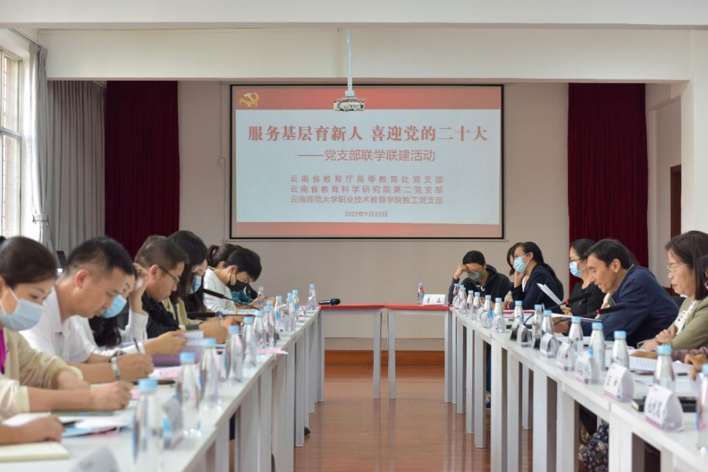 9月23日,职业技术教育学院教工党支部与云南省教育厅高等教育处党支部、云南省教育科学研究院第二党支部在437必赢会员中心一二·一西南联大校区开展以“服务基层育新人 喜迎党的二十大”为主题的联学联建活动。活动由云职业技术教育学院党委书记刘虹主持,三个支部共40余名同志参加。