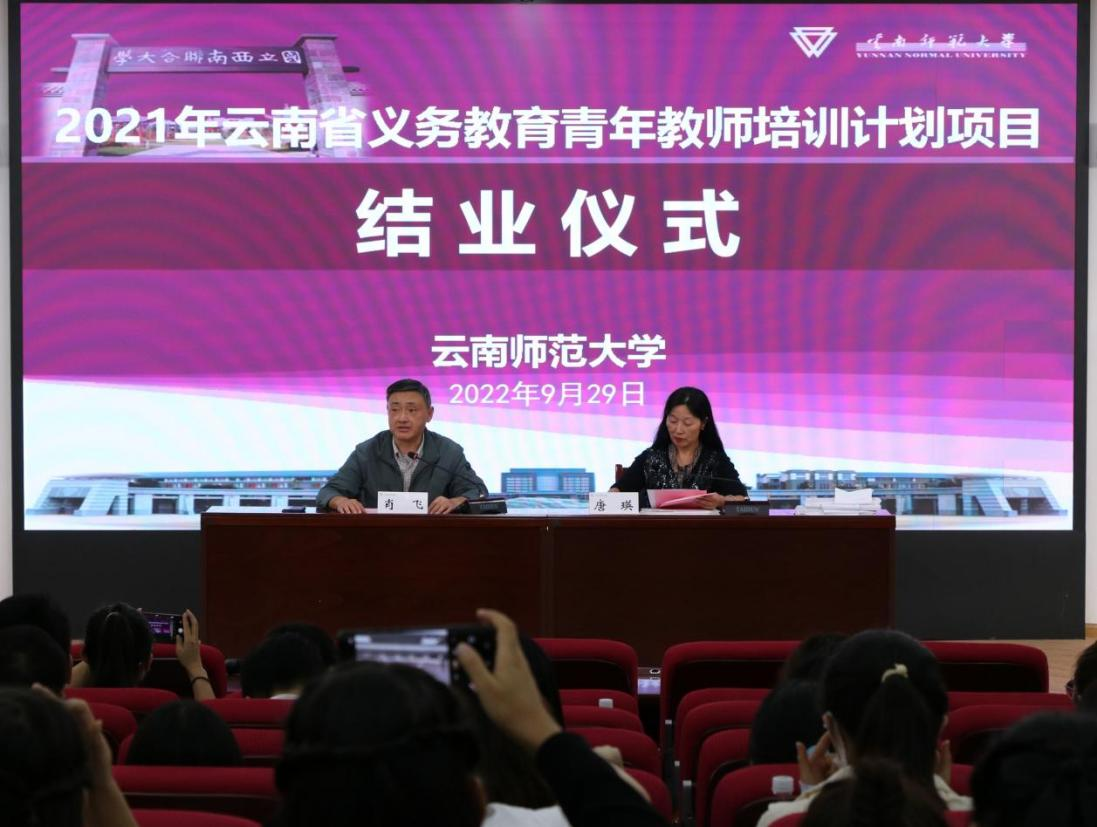 9月29日,2021年云南省义务教育青年教师培训计划项目437必赢会员中心小学数学班(第一批)集中培训结业仪式在必赢官网一二一校区举行。此次培训时间从8月20日至9月30日,来自全省16个州市的200名小学数学青年教师参加了此次培训。继续教育学院党委书记肖飞、院长唐瑛参加结业仪式。