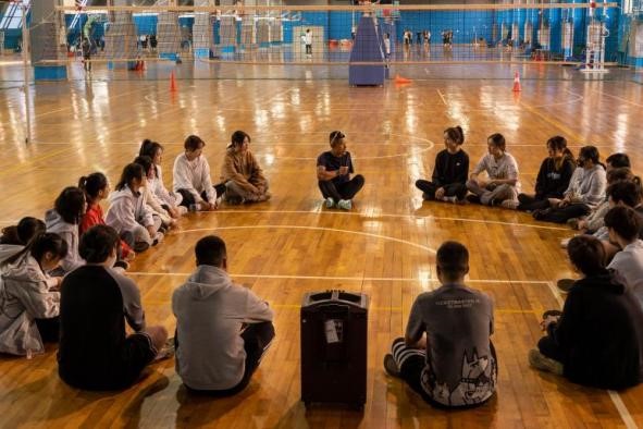 在游戏活动结束后,全体师生席地而坐,大家就王家超的训练日常提出了很多问题,王家超表示,体育给予了他积极乐观面对生活苦难的力量,他感谢体育,也希望体育精神能够带给同学们力量。