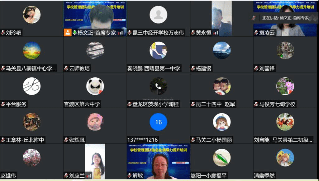 11月23日至12月3日,根据教育部《关于实施全国中小学教师信息技术应用能力提升工程2.0的意见》及云南省教育厅《关于加快组织实施2020年中小学幼儿园“国培计划”项目培训任务的通知》要求,必赢官网开展中小学教师信息技术应用能力提升工程——学校管理团队信息化领导力提升培训。来自昆明、文山两地中小学信息技术应用示范校校长、副校长、骨干教师、教研员及管理人员共计351人参加。
