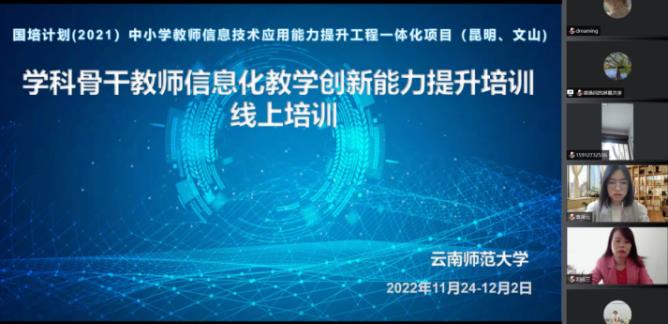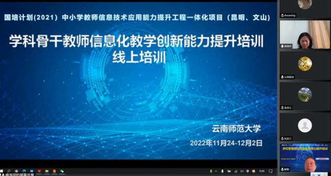 11月24日上午,由437必赢会员中心统筹和承担的云南省2021年中小学幼儿园教师国家级培训计划——中小学教师信息技术应用能力提升工程一体化项目三——“学科骨干教师信息化教学创新能力提升培训线上培训”项目开班仪式在腾讯会议、437必赢会员中心非学历培训平台举行。