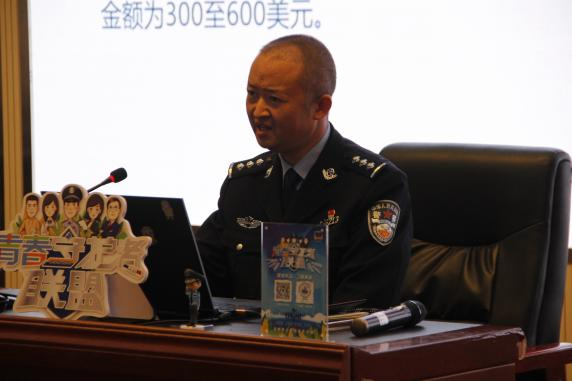 吴家营派出所警官倪辉以“为什么被骗的会是我”为题,结合切身工作经历,以案例讲解的方式为同学们详细讲解了电信诈骗的常用手段和防范电信诈骗的方式、方法,同时还现场发出倡议,希望同学们向身边的亲人和朋友讲解有关防范诈骗的知识,呼吁身边的人自提高防诈意识,参与反诈斗争,为更好的保护自己和身边人的利益,构建更加和谐美好的社会献出自己的力量。