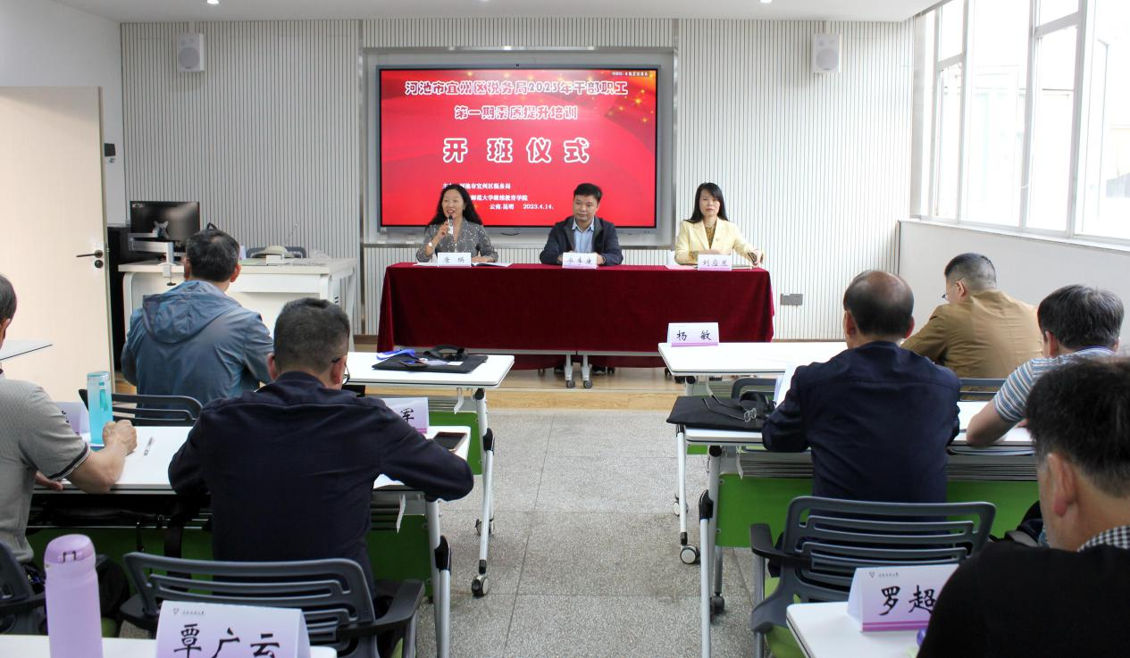 4月14日,由继续教育学院承办的“河池市宜州区税务局干部职工第一期党史学习教育暨综合素质提升培训”在必赢官网一二•一西南联大校区开班。河池市税务局副局长廖李康、马文勇,必赢官网继续教育学院院长唐瑛、副院长刘应兰及69名河池市宜州区税务局干部职工参加了开班仪式。仪式由刘应兰主持。